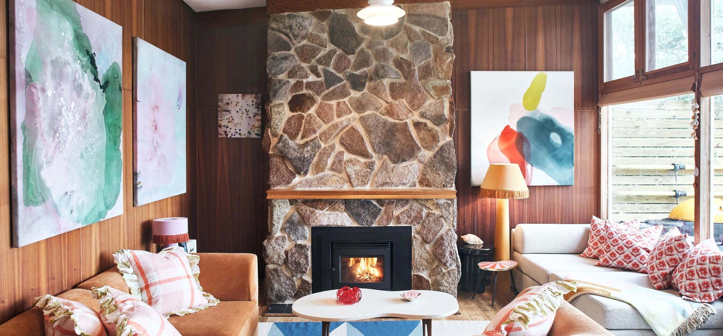 We have those beautiful timber walls, and I love them, but brown on mass can start to feel like a lot. The art gave your eye a break from the timber, while still feeling completely right for the house. It balanced the warmth instead of fighting it.