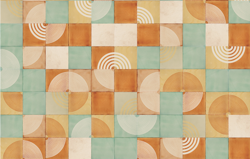 Sunrise is still my favourite. Those colours just pull me in. It’s fun, vibrant and fresh, but it also feels warm and calming at the same time. The mix of blush, terracotta and soft golden tones makes the whole space feel like it’s glowing. Fun, vibrant, fresh, like morning light, but in tile form.